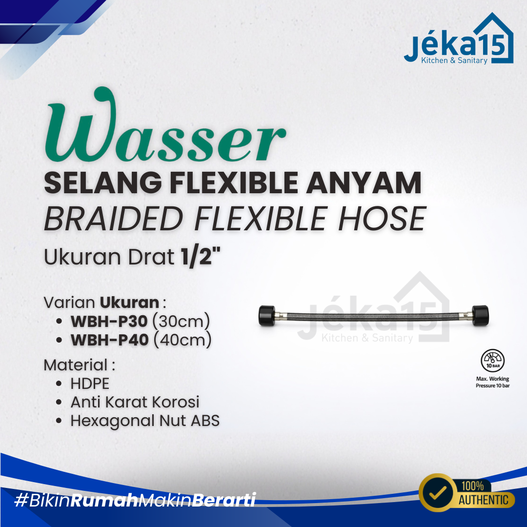 1. Selang fleksible dengan material HDPE untuk penggunaan air dingin (keran wastafel, sambungan inlet air ke tanki kloset, inlet air dingin water heater)
