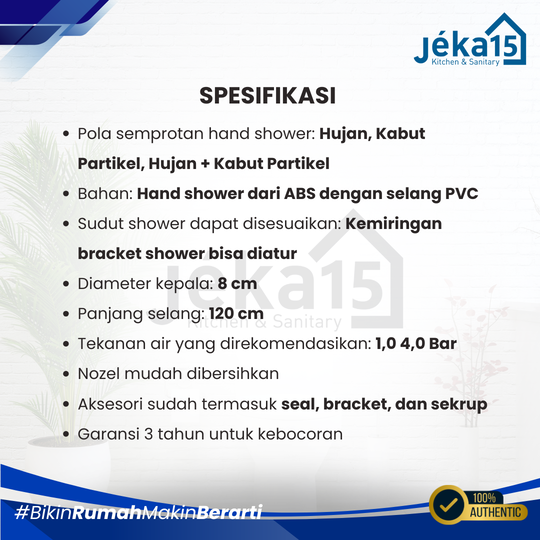 - Bahan: Hand shower dari ABS dengan selang PVC