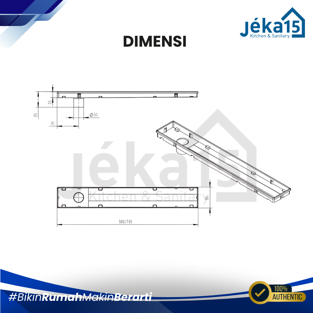 – Diameter pipa pembuangan 50mm